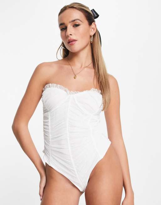 Miss Selfridge spot mesh bandeau bodysuit in white Very well made.