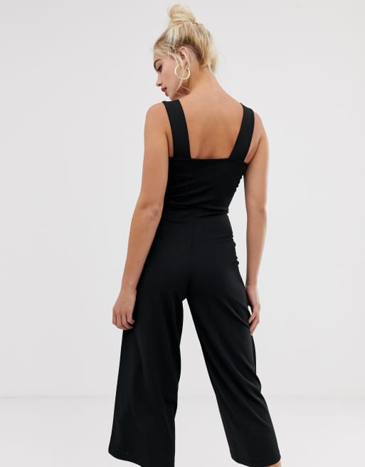 River Island cropped wide leg jumpsuit with square neck in black Very well made.