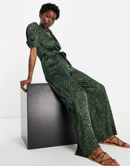Topshop animal satin jumpsuit in green Very well made.