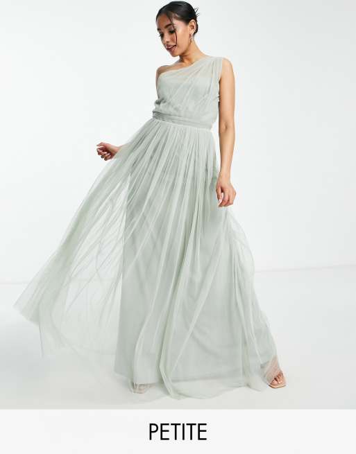 Anaya Petite Bridesmaid tulle one shoulder maxi dress in sage Very well made.