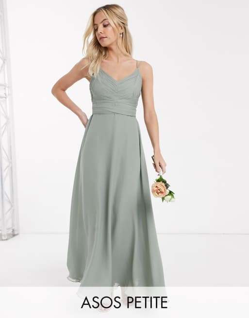 ASOS DESIGN Petite Bridesmaid cami maxi dress with ruched bodice and tie waist Very well made.