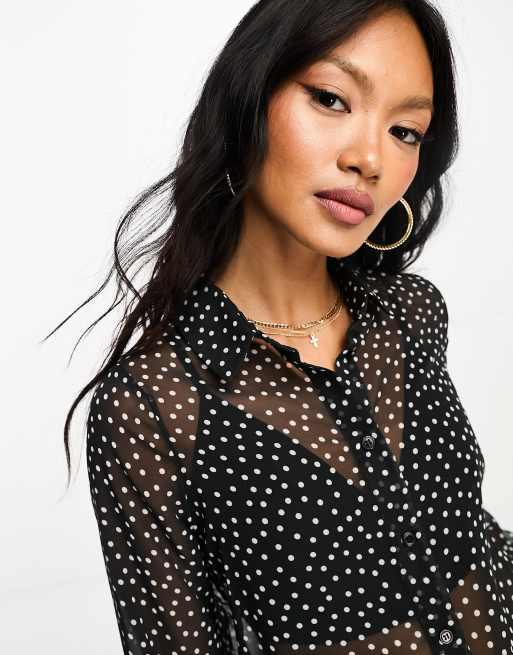 ASOS DESIGN long sleeve soft shirt in polka dot Very well made.